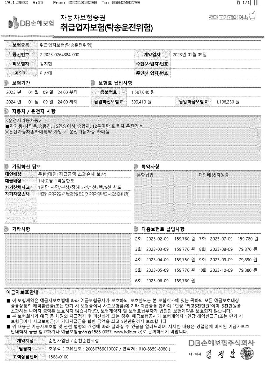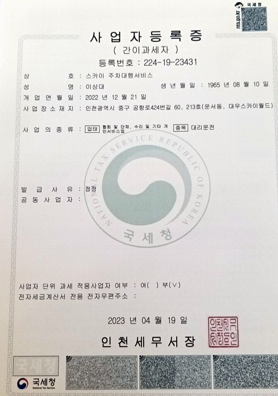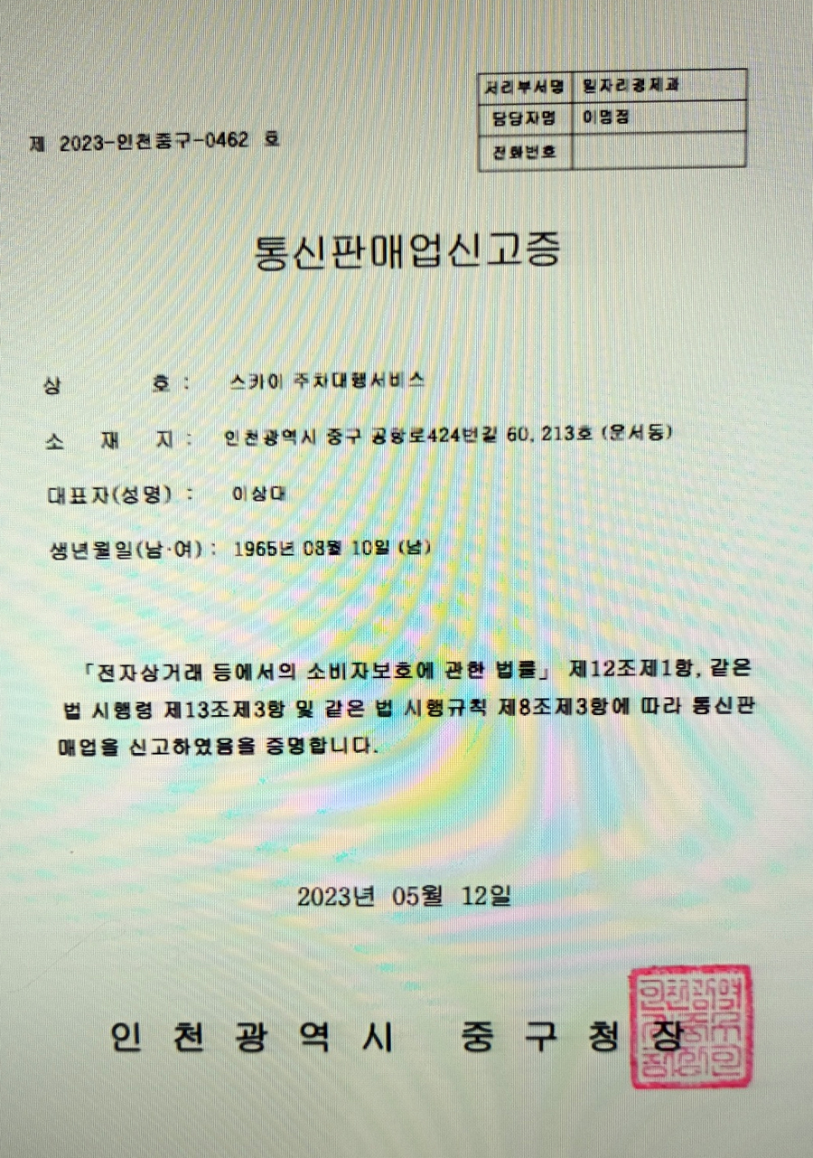 스카이 주차대행서비스 증명서류